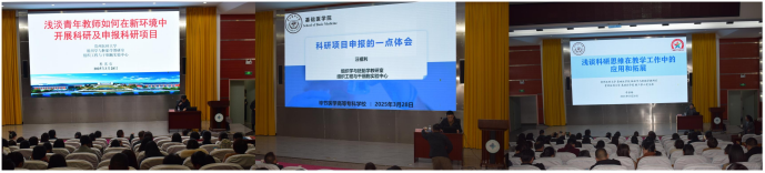 从科研定位、项目申报策略、教学改革创新等方面提出建议,分享选题创新与材料打磨的实践心得,阐述科研反哺教学的实现路径。三位博士专家的讲座兼具理论高度与实践价值,既为青年教师科研成长提供了方法论指导,又深化了教学与科研协同发展的理念,为学校教职工融通科研思维与教学实践,为创新驱动教育教学高质量发展注入了新动能。